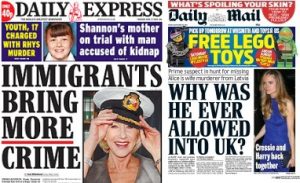 Ziarele traditionale au inceput o campanie masiva impotriva Uniunii Europene, in special impotriva imigrantilor din Estul Europei.Cazuri celebre, cand migranti Europeni au comis crime in UK,au fost explotate la maxim. Partidul pentru indepedenta Marii Britanii, au castigat alegerile Europene in 2014.