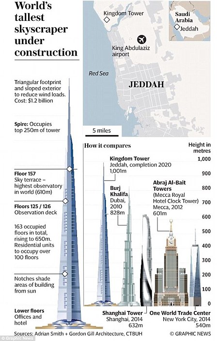 Cea mai înaltă clădire din lume are sa fie turnul Jeddah cu o inaltime de 3.280 de metri si va detine recordul mondial ca cea mai înaltă clădire din lume când va fi finalizat anul viitor.