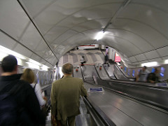 In schimb, la escalatoarele de la metrou sau aeropoarte de exemplu, pentru pietonii care nu se grabesc, eticheta dicteaza ca ei sa se opreasca pe partea dreapta a escalatoarelor pentru a permite trecatorilor care se grabesc sa ii depaseasca pe stanga.