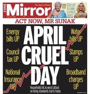A fost numită „Vinerea Sumbră” de către unii: creșterile de preț anunțate în prealabil pentru multe facturi din gospodărie urmează să intre în vigoare de la 1 aprilie, adăugând la mizeria consumatorilor care plătesc deja mai mult pentru bunuri și alimente decât în ​​această perioadă anul trecut.