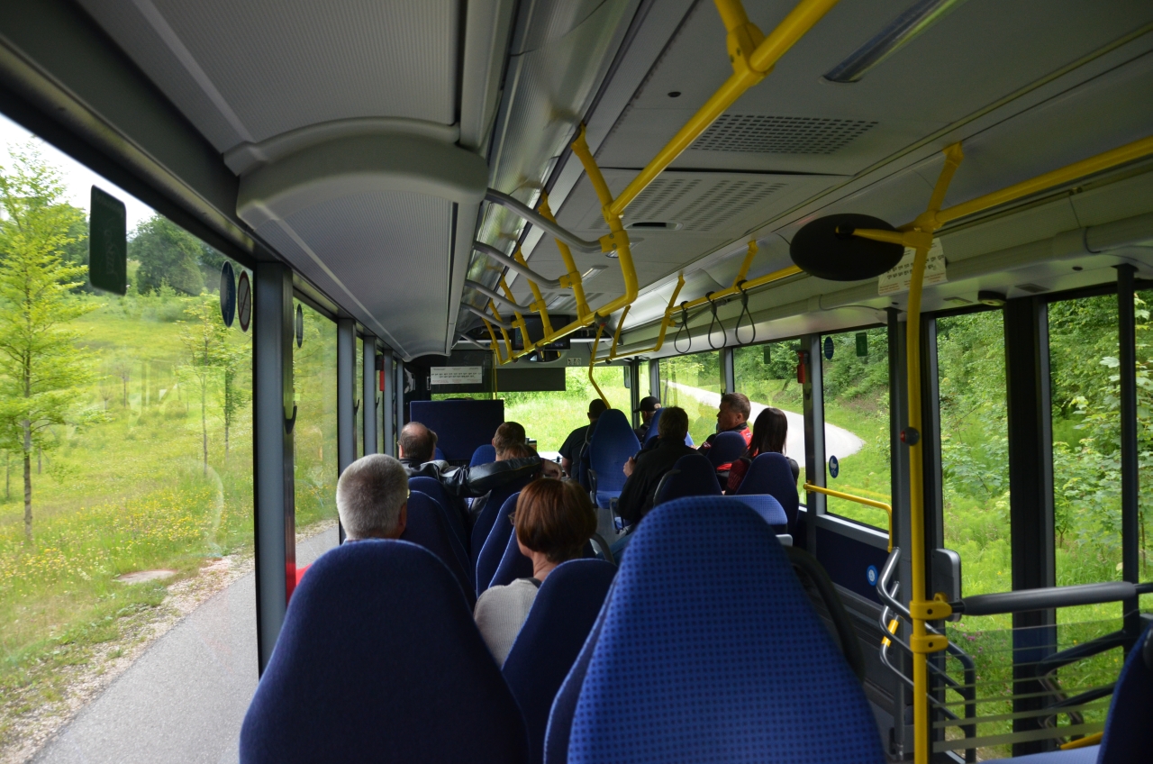 In scurt timp, cu precizie nemteasca, in timp ce unul dintre autobuzele care tocmai a coborat muntele ajunge in parcare, suntem invitati sa urcam in cel care ne va duce catre Eagle’s Nest. Toti turistii au locuri pe scaun si deopotriva la geam si iata-ne, pornim.