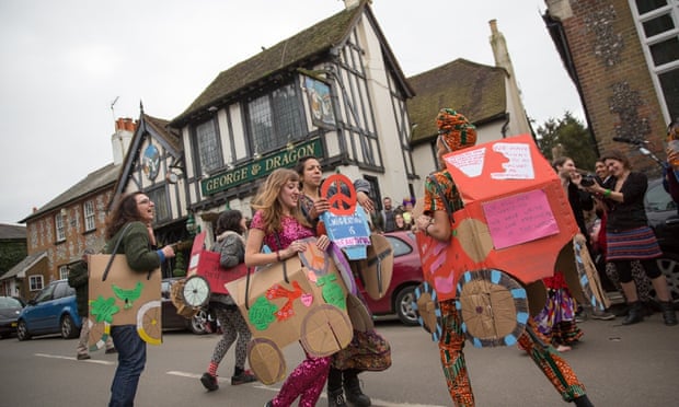 Protesters outside the George and Dragon in Downe, Kent. Photograph: Mike Kear