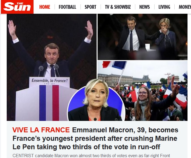 Presa britanica a aflat din nou ca este impotenta cand incearca sa influenteze alegerile din alte tari Europene iar campania personala impotriva la Emmanuel Macron folosind faptul ca Macron este insurat cu o femeie mai batrana ca el, a esuat complet.