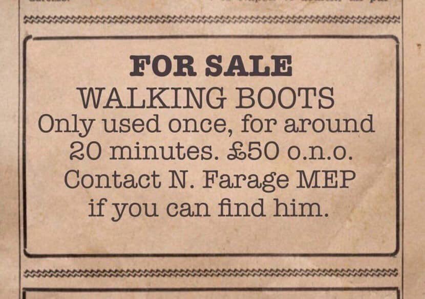 Vă bucurați de vizionarea acestei furturi îngrozitoare de înmuiere împotriva luminii pe moarte a relevanței sale. Care? Oh, ia -ți alegerea: Nige sau Boris.