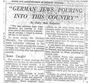 Ziarul a continuat editorial să se opună sosirii refugiaților evrei care scăpau din Germania, descriind sosirea lor drept „o problemă la care Daily Mail a semnalat-o în mod repetat”.