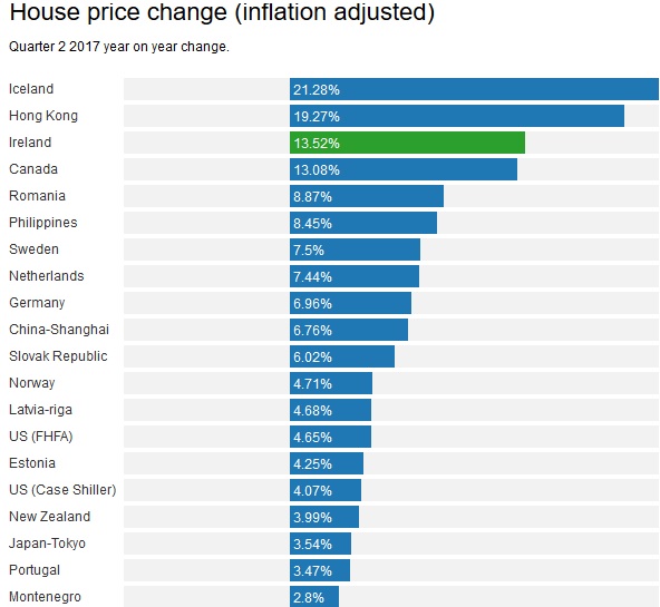 Conform Ghidului Global Property cele mai puternice piețe imobiliare din lume în al doilea trimestru din 2017, pe baza creșterii de la an la an, au fost: