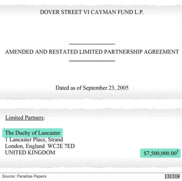 Ducatul din Lancaster, care oferă Reginei un venit regulat, deținea fonduri în Insulele Cayman și Bermuda.