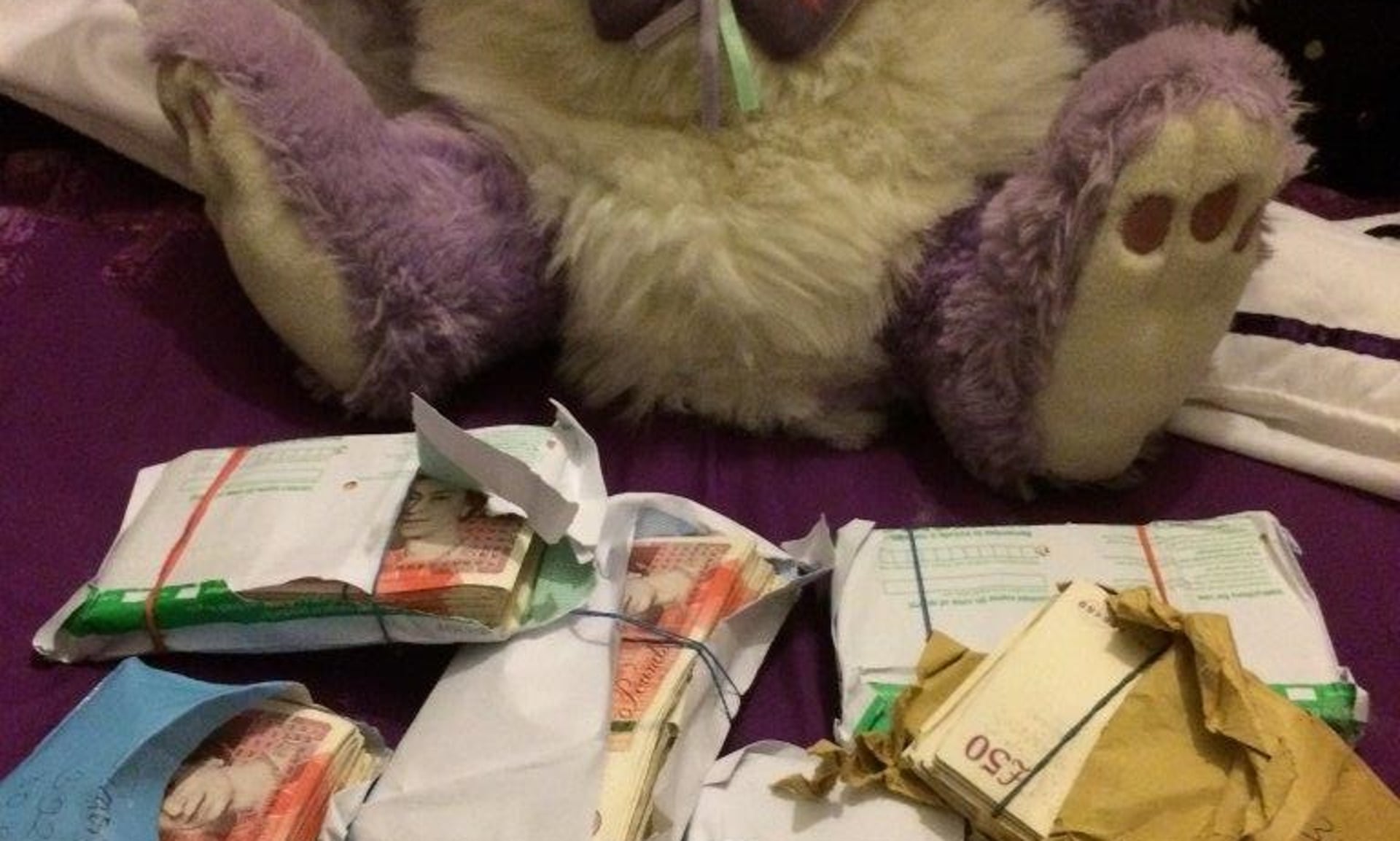 In timpul raziei polițistii au găsit 60.000 de lire sterline ascunse în interiorul unui ursuleț de pluș și un dulap plin de genți de mână de designer, unele în valoare de mii de lire sterline.