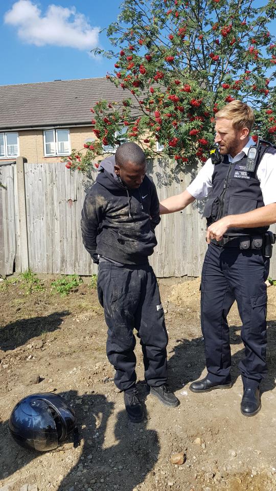 Incidentul a avut loc in Mitcham unde romanul care lucreaza in constructii a vazut cum doi barbatii care aveau o motoreta incearcau sa jefuiasca un cuplu in varsta.