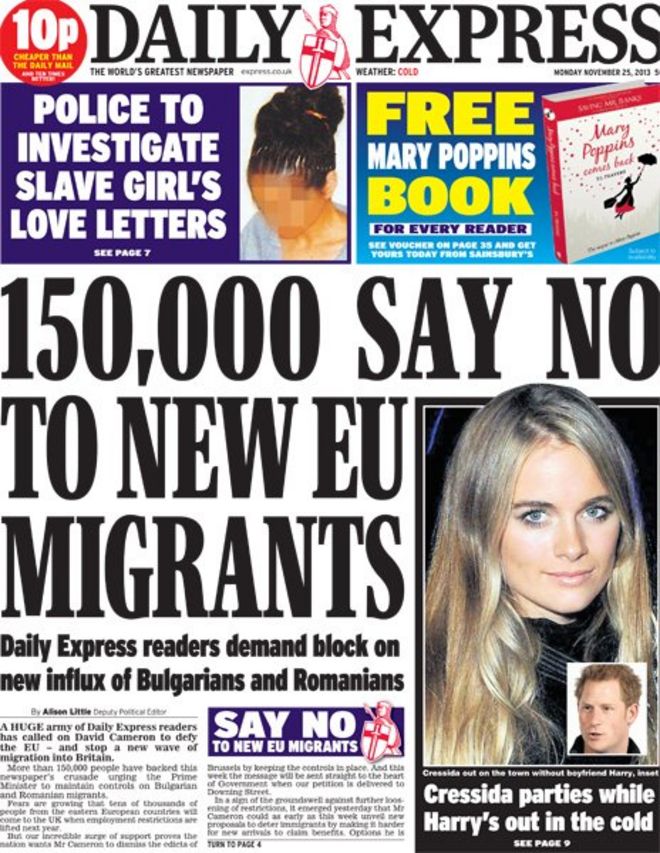 Richard Desmond,un milioanar evreu, nascut in 1951 si care lucra in cluburi Londoneze cand era adolescent, a cumparat Daily Express newspaper (ziar cumparat de anti-evrei,nazisti ,rasisti) si e propietarul la reviste precum OK! si un canal de televiziune pornografic , a aprobat campania exagerata dusa de catre Daily Express impotriva imigrantilor din Estul Europei.